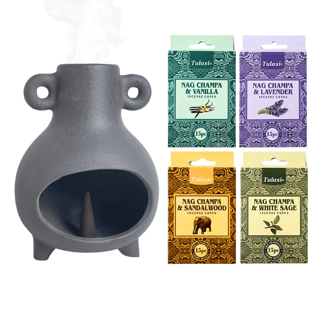 Vira the hand-made, multi-use incense holder + 4 bestsellers cone packs for a special price!